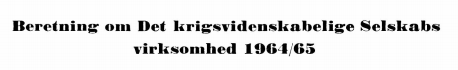 Samtidig har der været en afgang på grund af død, alder og afsked på 34. Det er således kun godt halvdelen af samtlige linieofficerer, der er medlemmer, og der er derfor endnu et stort arbejdsmarked for hvervningen. Det har især bekymret bestyrelsen, at antallet af medlemmer blandt søværnets officerer er så ringe, men også tallene for flyvevåbnet og korpsene forekommer mindre tilfredsstillende. Især føles det som en mangel, at kun ganske få af officererne fra Hærens tekniske Korps tælles blandt medlemmerne. Bestyrelsen er selvsagt klar over, at der er mange forhold, der har indflydelse på disse tal. Især skal fremhæves, at søværnets officerer er medlemmer af en videnskabelig forening: Søe-Leutenantsselskabet. Ikke desto mindre føler den nuværende bestyrelse det som en stor mangel, den ulige vægt der er mellem værnenes og korpsenes repræsentation. I en tid, hvor kravet om indbyrdes kendskab til hinanden er så stærkt motiveret, og hvor så mange problemer må hæves op i en fællesværns betragtning, ville det være ønskeligt med en bredere tilslutning til selskabet fra alle tre værn og korpsene. Det kan i denne forbindelse nævnes, at den foredragsften, hvor der i denne sæson var størst tilslutning, netop var en aften, hvor et fællesvæms problem blev bragt op til debat. Ved bestyrelsens forslag til inddragelse af nye medlemmer er der tilstræbt skabt en bredere berøringsflade med alle værn og korps. I erkendelse af, at en større del af de medlemsberettigede officerer gjorde tjeneste på Fyn og i Jylland, besluttede bestyrelsen at ville forsøge gennemført et å to foredrag i jyske garnisoner. I marts måned d. å. blev der i overensstemmelse hermed afholdt foredrag i Ålborg, Fredericia og Århus. Det ene sted var tilslutningen absolut tilfredsstillende, de to andre steder kun nogenlunde. Erfaringerne fra denne foredragstourné er dog sådanne, at bestyrelsen mener, at foredragene bør fortsætte næste vinter. Det er i øvrigt Selskabets håb, at denne aktivitet kan få endnu flere officerer i de jyske garnisoner, flådestationer og flyvestationer til at melde sig ind i selskabet. Det i sidste års beretning anførte om arbejdet med en overenskomst med Reserveofficersforeningen, således at dens medlemmer kunne modtage tidsskriftet til en favørpris, er nu afsluttet med et gunstigt resultat. Der er således nu tegnet i alt ca. 115 abonnementer under denne ordning. Om Selskabets aktivitet i det forløbne år skal endvidere fremføres: Foredragssæsonen: Der var planlagt 8 foredragsaftener, men kun 7 blev gennemført, idet udenrigsminister Per Hækkerup blev tvunget til at sende afbud. Tilslutningen til disse mødeaftener har heller ikke i år været helt tilfredsstillende, men det er bestyrelsens hensigt at søge de praktiske arrangementer ændret, således at mødeaftenerne kan virke mere tillokkende. Læsekredsen: Tilslutningen til denne har været 50 % større end de foregående år. Det er bestyrelsens håb, at de forsinkelser og vanskeligheder med at fremskaffe bøgerne som selskabet var udsat for i efteråret 1964 vil kunne undgås i 1965, og at de ikke vil influere på tilslutningen. Selskabets arkiv: Gennemgangen af dette er nu afsluttet, ligesom saneringen er tilendebragt. De overskydende eksemplarer af særtryk og tidsskrifter, som medlemmerne ikke købte, er skænket Det kongelige Garn isonsbibliotek . Særtryk: Selskabet lod fremstille et antal særtryk af oberstløjtnant H. K lints artikel om Saint Germain samt bestemmelserne for Selskabets medalje og forlagsboghandler Ove Trydes mindelegat, således som de var optaget i tidsskriftets november nummer. Dette særtryk tilsendes bl. a. alle, der melder sig ind i Selskabet. For den bestyrelse, der skal lede Selskabet i året 1965/66 vil der foreligge følgende særlige problemer: De stigende udgifter til tidsskriftet og bestyrelsens ønske om at kunne igangsætte flere projekter gør en nøjere budgetplanlægning nødvendig. Det kan herunder vise sig påkrævet under en eller anden form at udskille tidsskriftets regnskab fra Selskabets almindelige regnskab. Den svigtende annoncering i tidsskriftet er blevet endnu mere udtalt end ved sidste regnskabsårs afslutning. På dette punkt må og skal der findes veje for en forbedring. Etableringen af et fond med henblik på Selskabets 100-års jubilæum i 1971. Denne dag skulle gerne kunne markeres ved udgivelsen af et krigsvidenskabeligt værk.