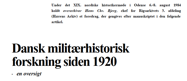 Under det XIX. nordiske historikermøde i Odense 6.-8. august 1984 holdt overarkivar Hans Chr. Bjerg, chef for Rigsarkivets 3. afdeling (Hærens Arkiv) et foredrag, der gengives efter manuskriptet i den følgende artikel.